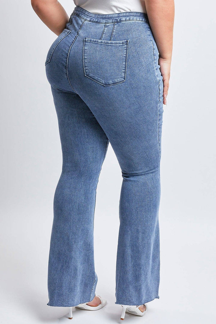 Plus Low-Rise V-Front Pull On Flare Jeans - Denim